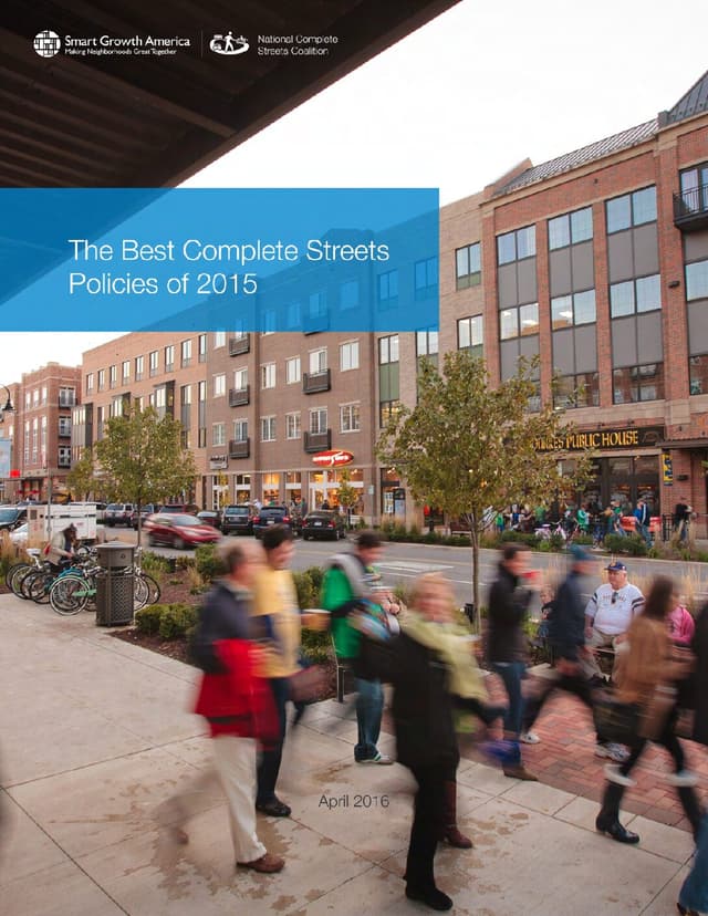 Sixteen agencies led the nation in creating and adopting comprehensive Complete Streets policies in 2015. These policies are a model for communities across the country. They are:
