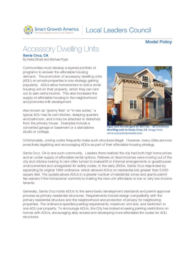 Communities must develop a layered portfolio of programs to answer the affordable housing demand. The promotion of accessory dwelling units (ADU) on private properties is one strategy gaining popularity. ADUs allow homeowners to add a small housing unit on their property, which they can rent out to earn extra income. This also increases the supply of affordable housing in the neighborhood and promotes infill development.