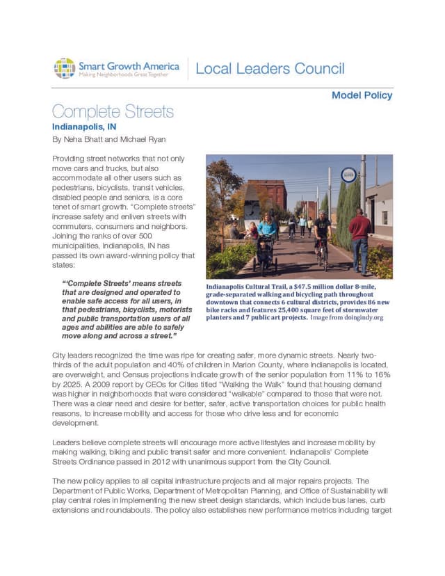 Joining the ranks of over 500 municipalities, Indianapolis, IN has passed its own award-winning policy that states: