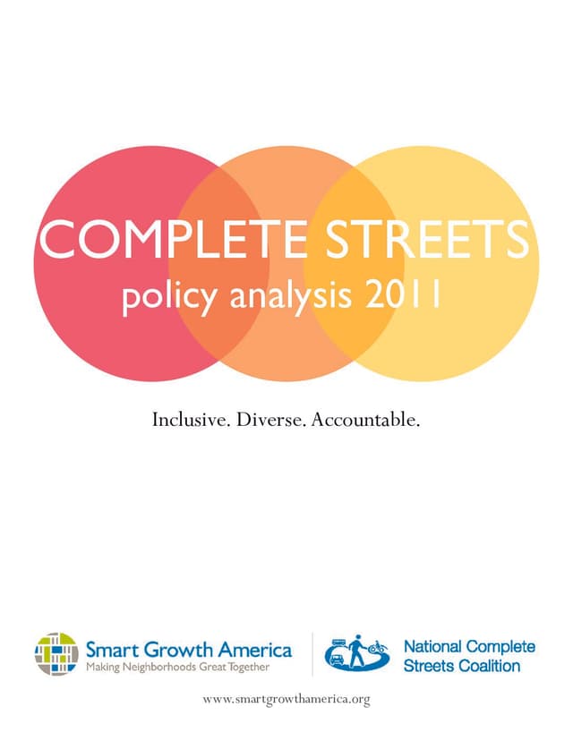 This report documents the growth of that diverse movement and its strengths by analyzing the more than 350 existing written policies adopted by states, regions, counties, and communities before January 1, 2012. Policies that come closest to meeting the ‘ideal’ are highlighted. Used in conjunction with the Complete Streets Local Policy Workbook, this report is also a useful tool for communities looking to develop their own Complete Streets policy based on current best practices. Many examples in this report come from policies adopted in 2011, in part because so many strong examples were adopted last year.
