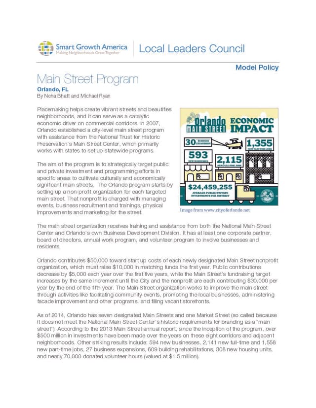 In 2007, Orlando established a city-level main street program with assistance from the National Trust for Historic Preservation’s Main Street Center, which primarily works with states to set up statewide programs. The aim of the program is to strategically target public and private investment and programming efforts in specific areas to cultivate culturally and economically significant main streets.