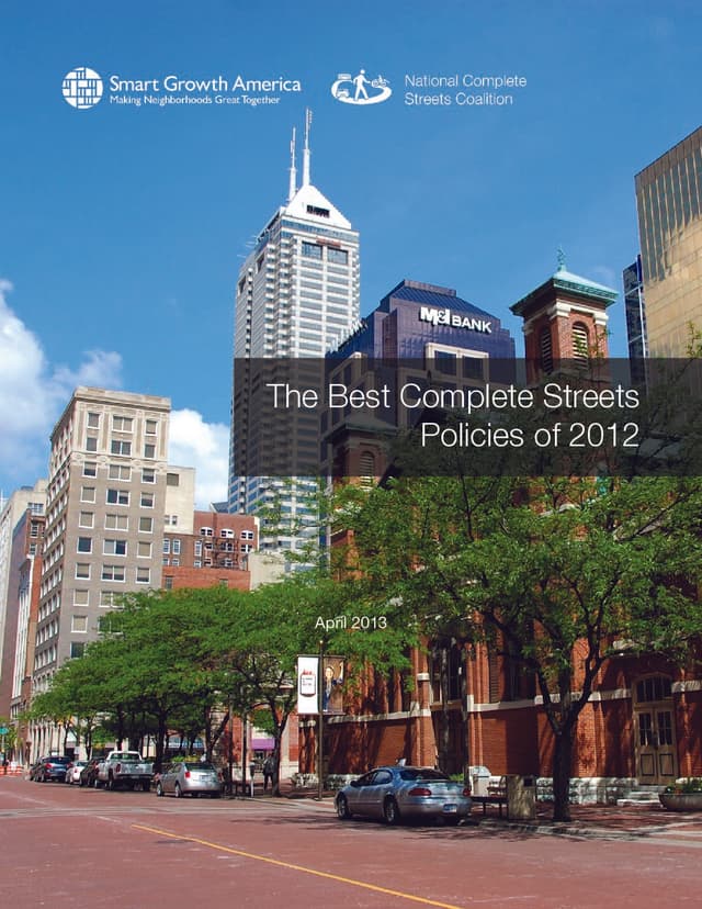 The National Complete Streets Coalition supports communities as they develop, adopt and implement Complete Streets policies, and we are proud to have worked with and supported many of the communities discussed in this analysis. This report highlights exemplary policy language, and provides leaders at all levels of government with ideas for how to create strong Complete Streets policies. Information about additional resources for local leaders is also included.