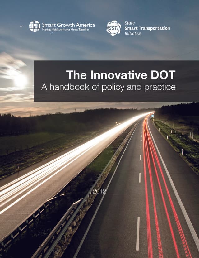 Smart Growth America has partnered with the State Smart Transportation Initiative to develop The Innovative DOT, a resource for state transportation officials. This handbook provides 31 recommendations transportation officials can use as they position their agencies for success in the new economy. Developed with input from top transportation professionals and officials at state agencies around the nation, the handbook documents many of the innovative approaches state leaders are using to make systems more efficient, government more effective and constituents better satisfied.