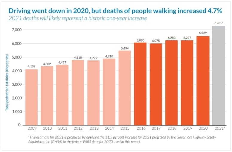 We are amid a historic, alarming increase in the number of people struck and killed while walking, which has been on a steady rise since 2009, reaching levels not seen in more than 30 years.