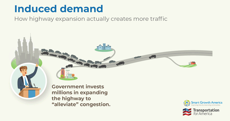 This focus on freeflow car travel is embedded in our transportation policies, funding structures, design and operational standards, and performance measures. It contributes to a feedback loop that results in disconnected, sprawling land uses, displaces economic development in favor of car movement and storage, creates significant congestion completely by design, and causes Americans to drive more and further every year.
